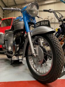 This motorbike was donated to the society by a retired paramedic from Lincoln. It was new in 1962 and fitted with a 650cc 2 cylinder overhead valve engine providing 40 BHP