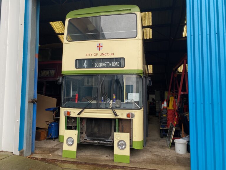 Much work has been carried out on Leyland Olympian ’45’ over the last year. The job list has included repairing the heavy battery box underneath the driver’s cab and the associated framework that supports it, repairs to the lower deck emergency door, a new starter motor and solving various electrical issues!